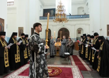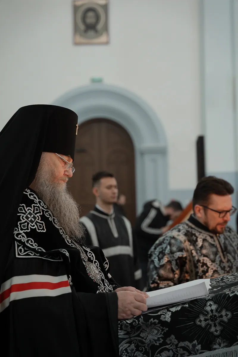 24 февраля 2026 года, во вторник первой седмицы Великого поста, наместник Жировичского монастыря архиепископ Новогрудский и Слонимский Гурий молился за уставными богослужениями в Успенском соборе Жировичской обители.