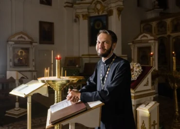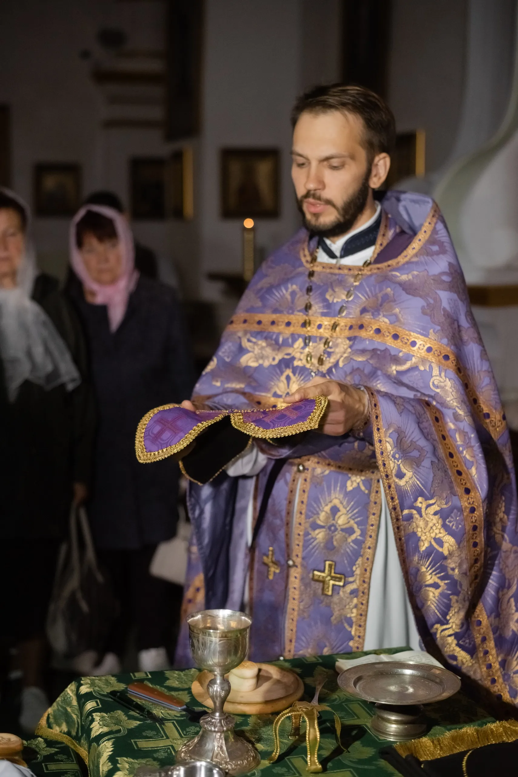Чтец Виталий Добриян познакомил участников с пономарским делом, видами и значением облачения священнослужителей, особенностями приготовления к Литургии.