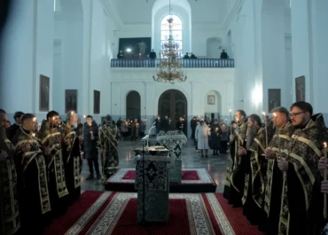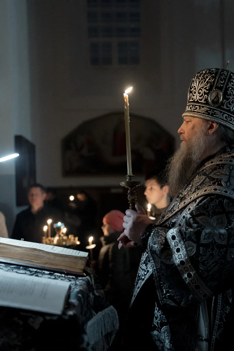 Вечером 9 апреля 2026 года архиепископ Новогрудский и Слонимский Гурий совершил утреню Великой Пятницы с чтением двенадцати Страстных Евангелий в Успенском соборе Жировичского монастыря.