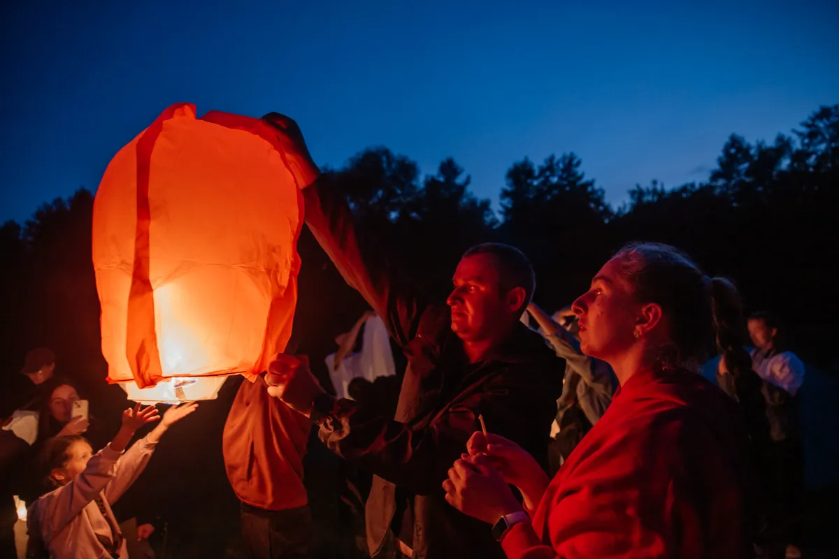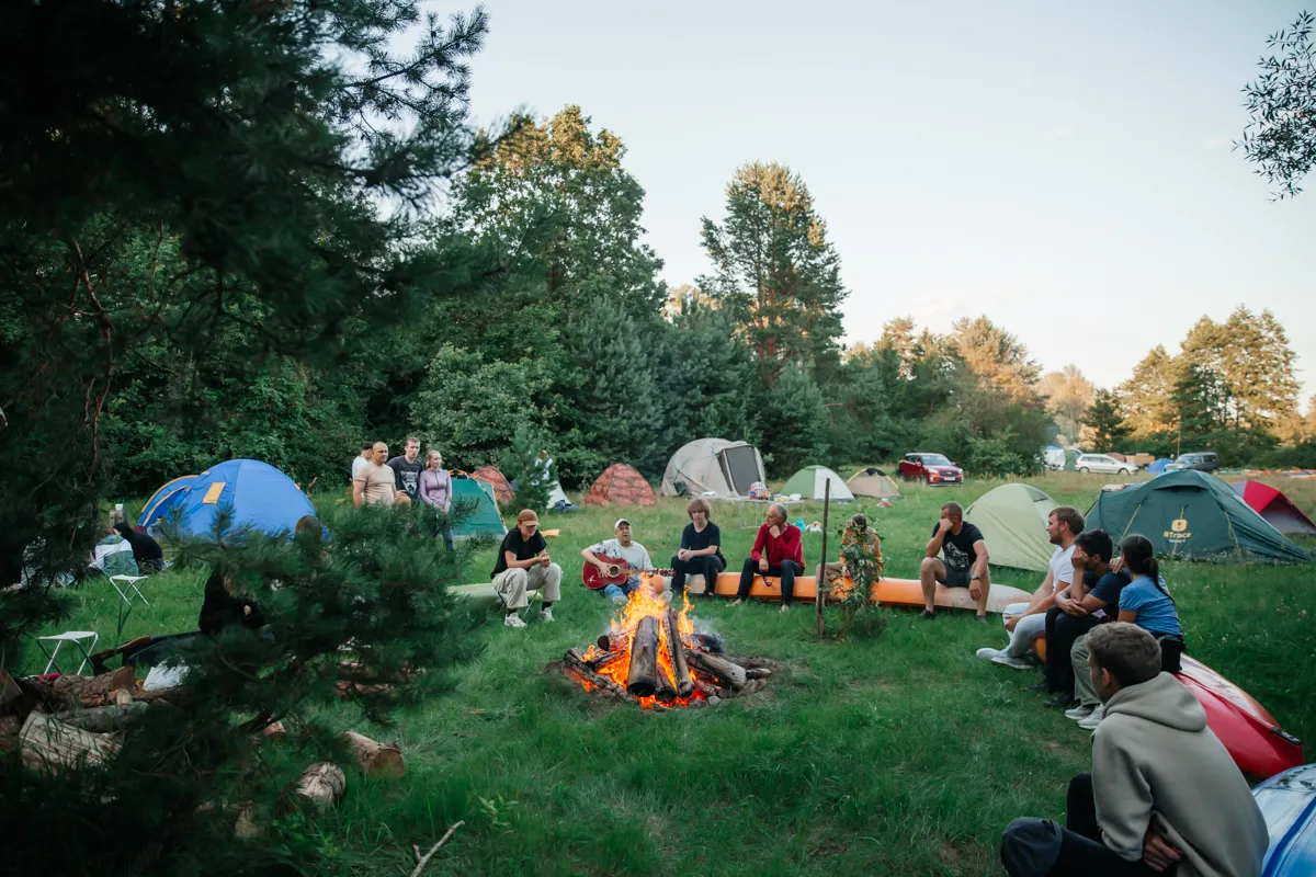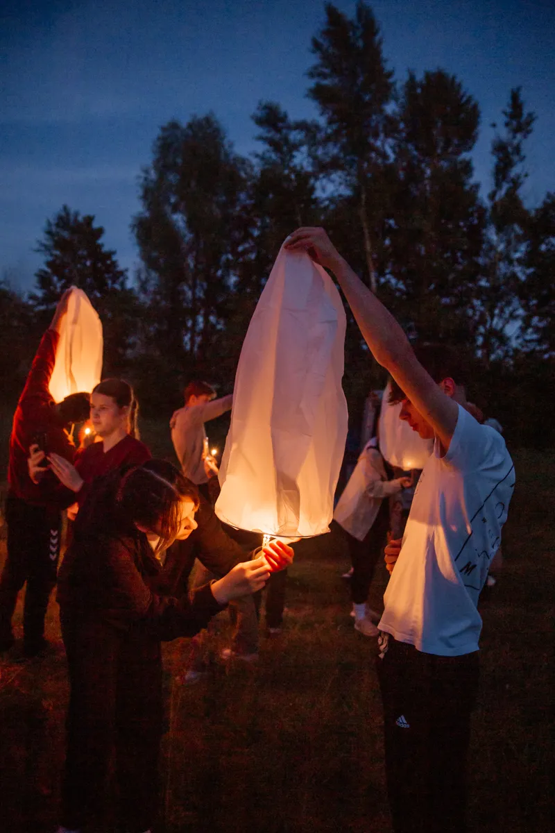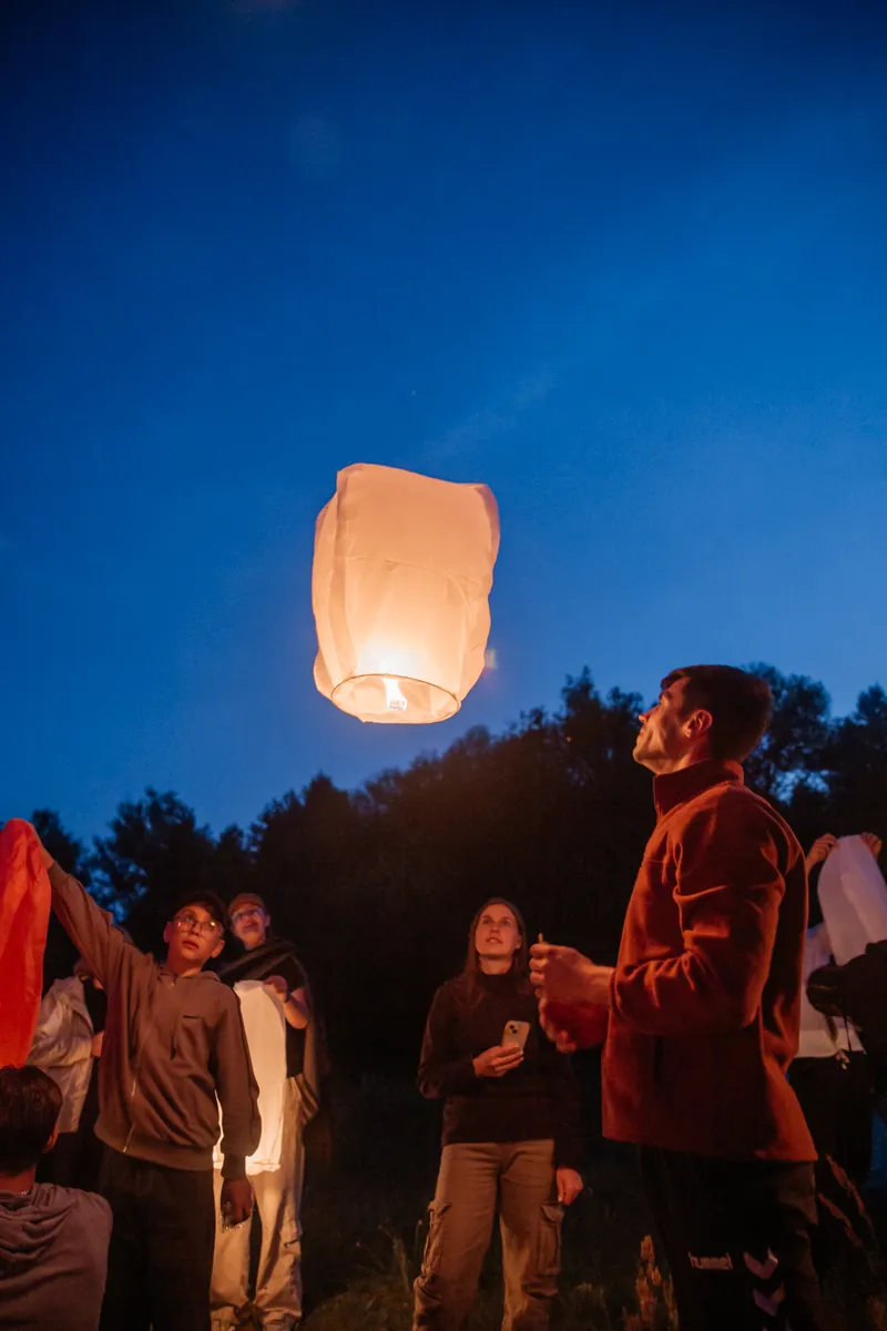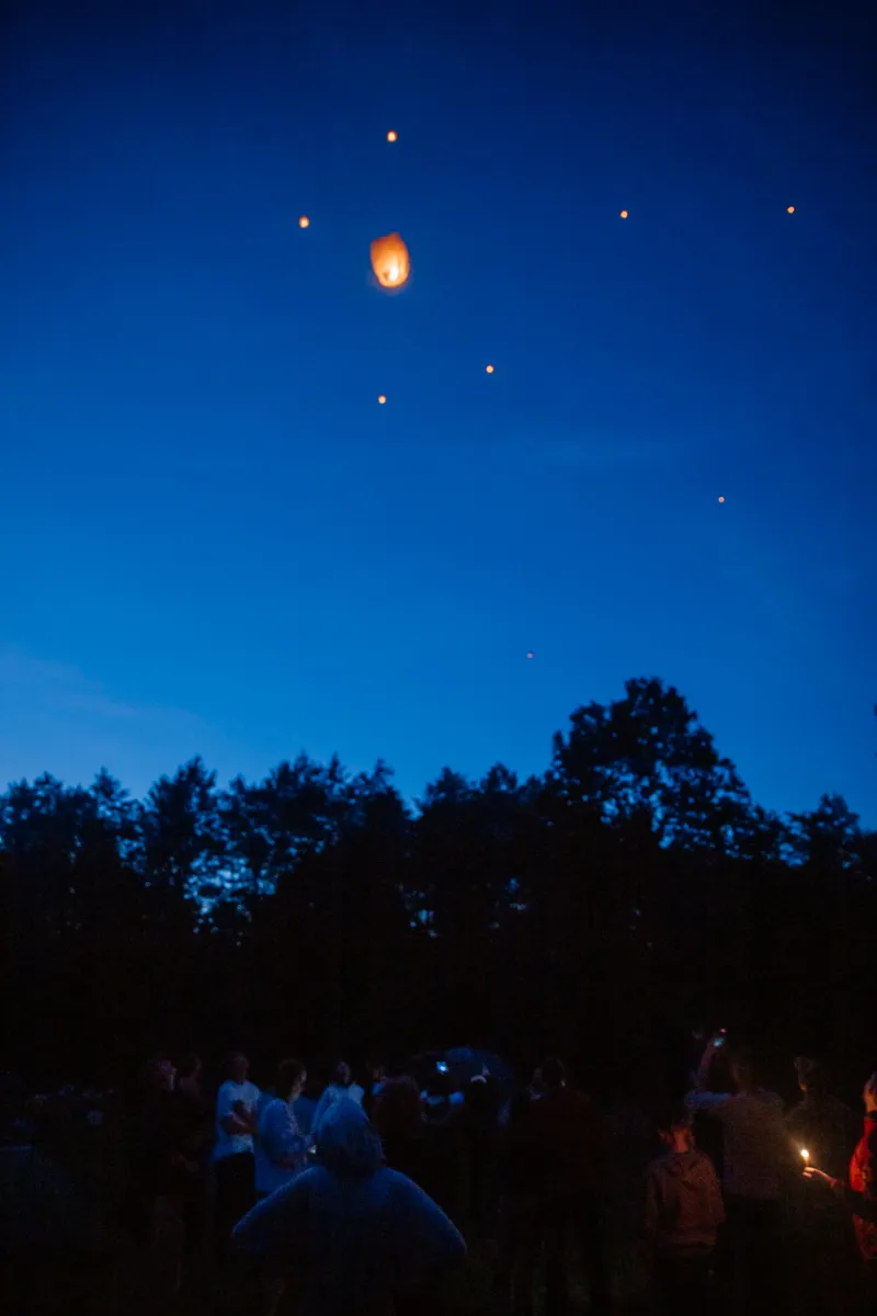 Первый день сплава завершился музыкальным вечером под гитару у костра. По сложившейся традиции участники зажгли и запустили небесные фонарики. Вечерние и утренние молитвы совершались на берегу и сопровождались комментариями руководителя миссионерского отдела.