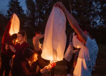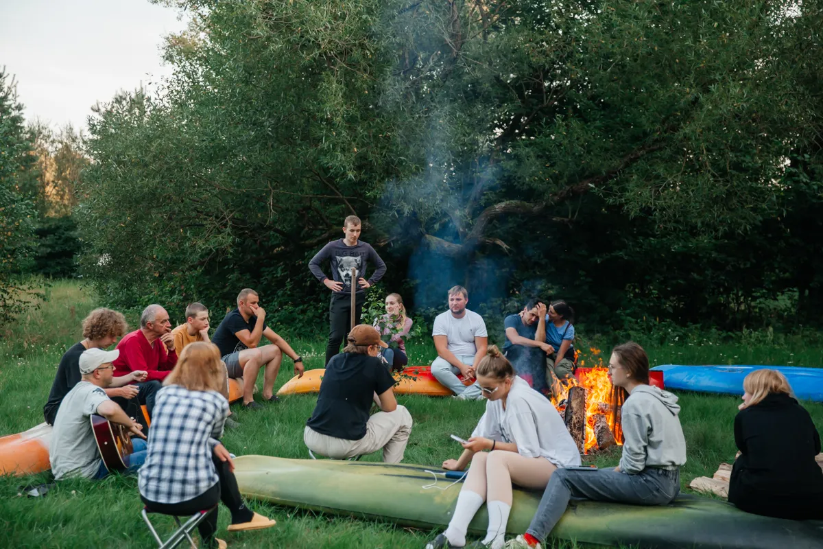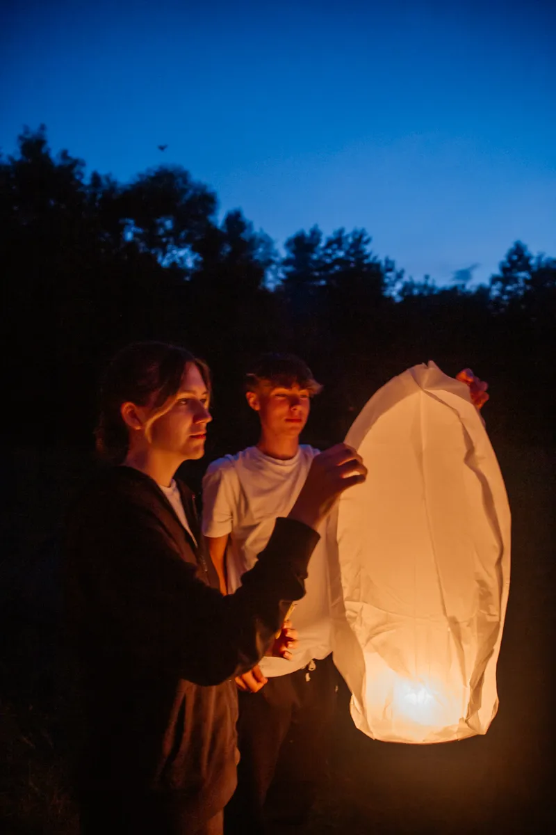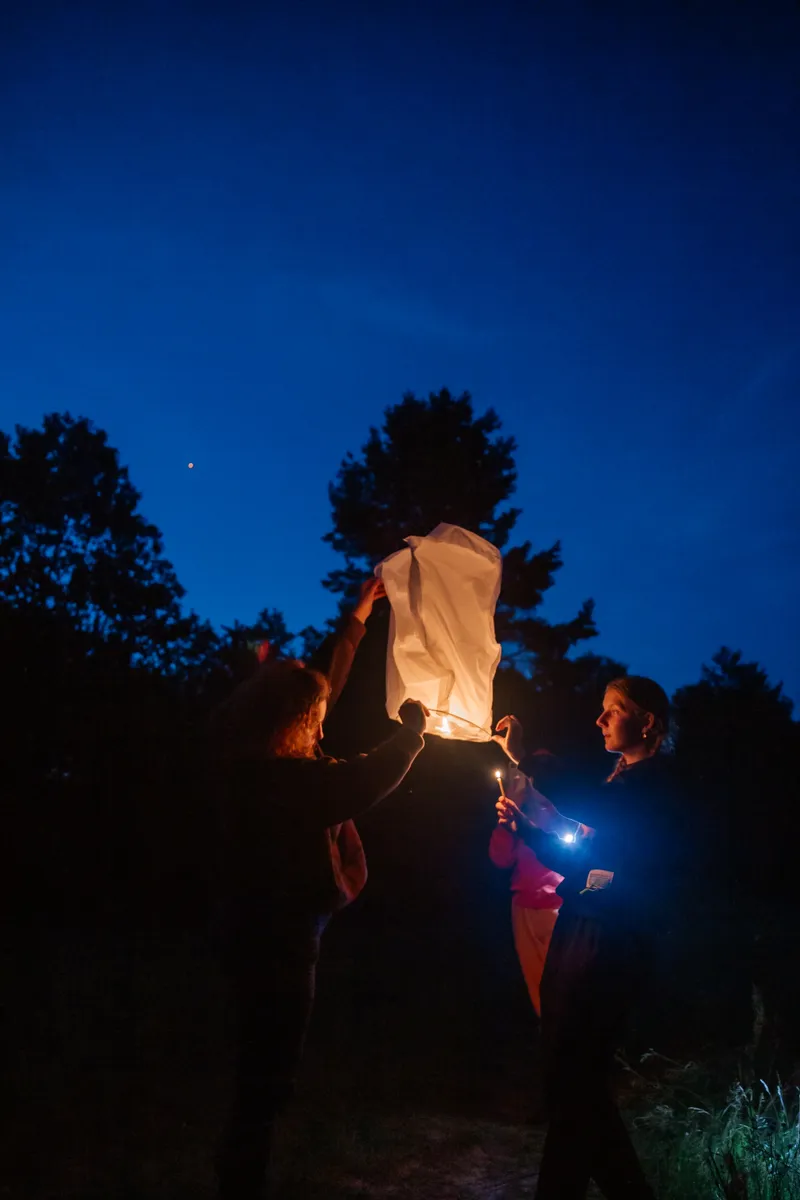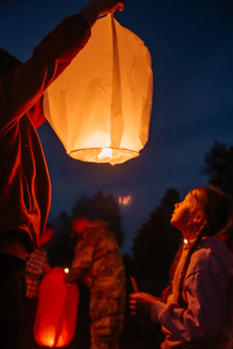 Первый день сплава завершился музыкальным вечером под гитару у костра. По сложившейся традиции участники зажгли и запустили небесные фонарики. Вечерние и утренние молитвы совершались на берегу и сопровождались комментариями руководителя миссионерского отдела.